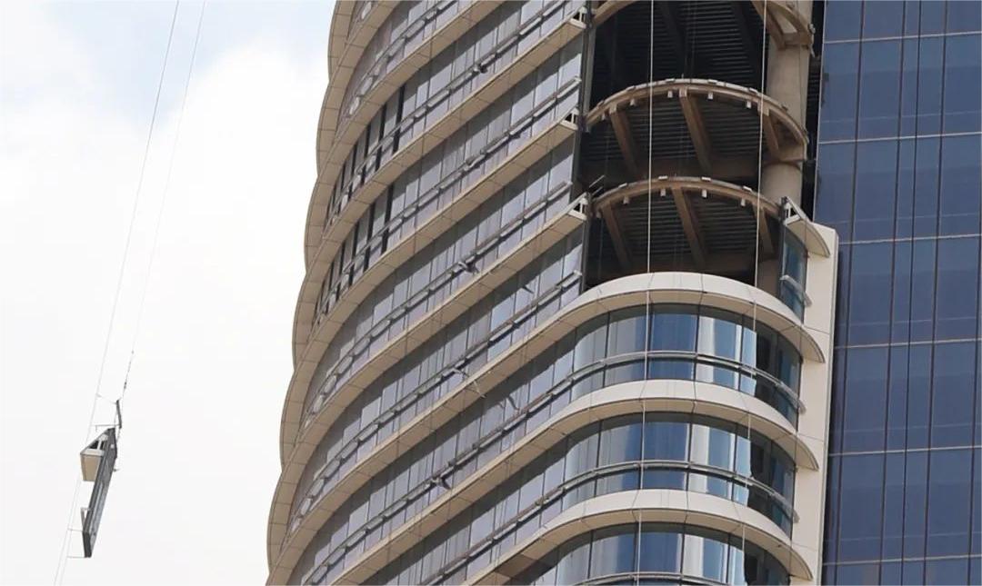 當(dāng)?shù)貧夂蜓谉岣稍铮罡邭鉁乜蛇_(dá)50攝氏度,大樓幕墻需具備很強(qiáng)的防曬作用和耐高溫性能。塔樓呈雙半圓筒狀體外觀構(gòu)造,配以橫向遮陽(yáng)和雙曲拉鏈梁的裝飾鋁單板,猶如古埃及女神瓦吉特的外衣。這些設(shè)計(jì)元素不僅增強(qiáng)實(shí)用功能,如減少直射日光和控制室內(nèi)溫度,且增加了建筑的視覺吸引力,使其成為一座現(xiàn)代與傳統(tǒng)相結(jié)合的建筑。