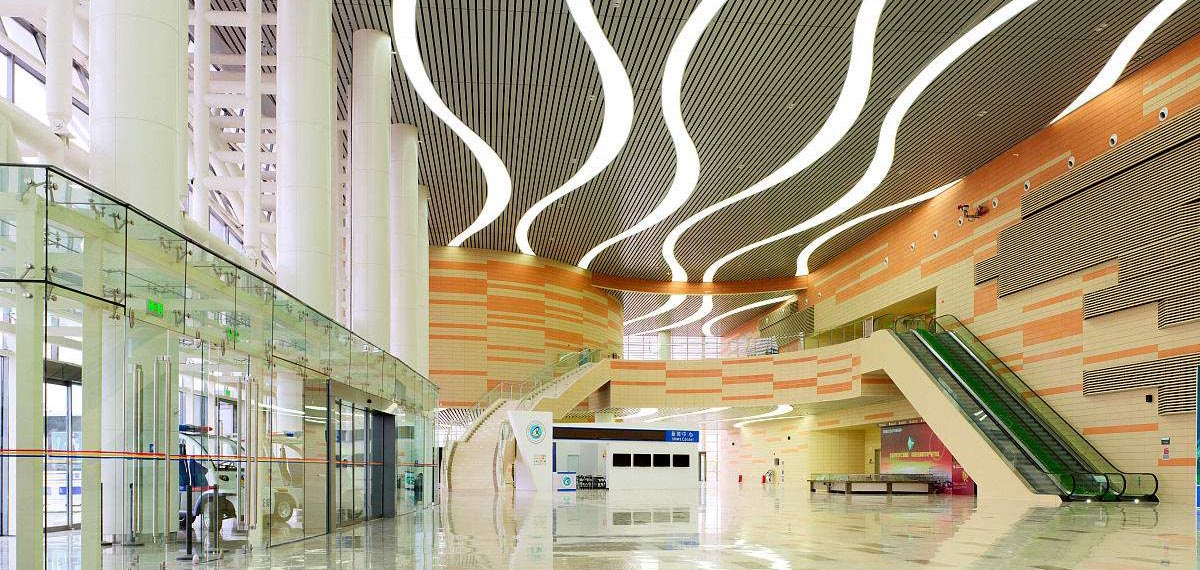 新疆克拉瑪依會(huì)展中心,1期(20,000平方米)和2期(40,000平方米)。1期會(huì)展廳可以被分隔為兩個(gè)各5,5000平方米的廳,公共大堂和廣場(chǎng)是室內(nèi)的,以響應(yīng)克拉瑪依寒冬氣候和盛行風(fēng)。1期的主大堂特意被做成超大尺寸以允許舉辦額外的超大展覽或?yàn)榱藵M(mǎn)足多個(gè)展覽的登記工作;1期大堂也通過(guò)人行天橋與2期連接。一個(gè)能夠容納超過(guò)300人的會(huì)議區(qū)域被置于大堂的上一層。